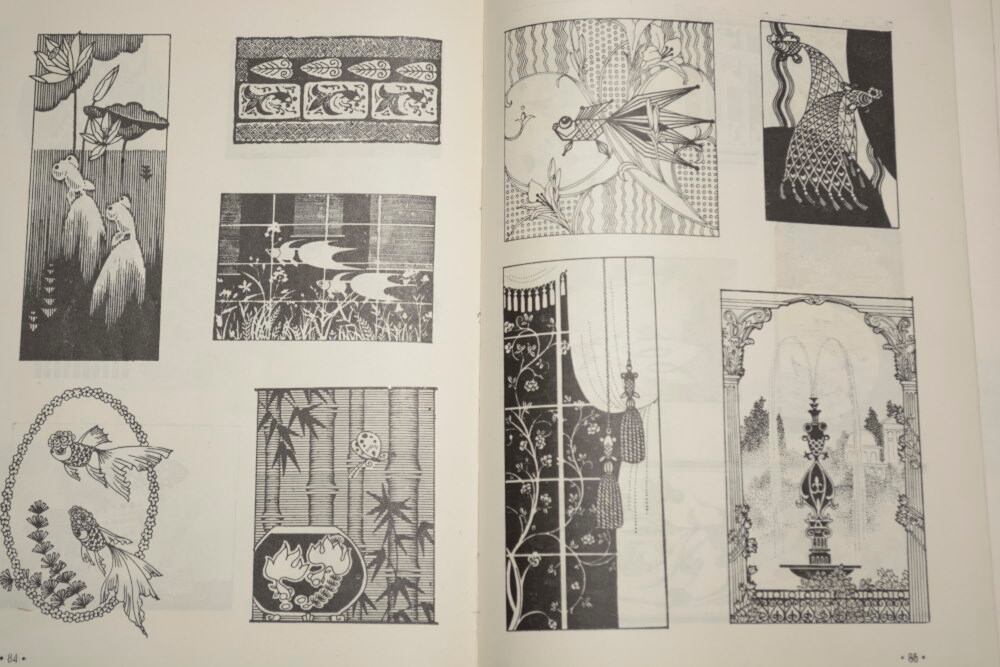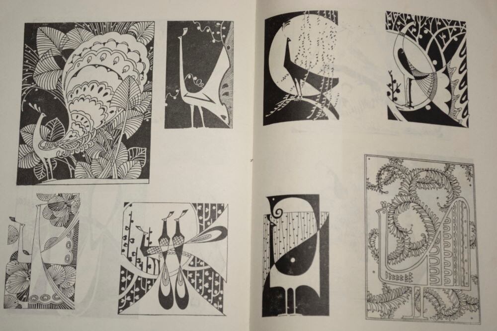 刺繍の図案の参考資料として、花と動物の図案が多数紹介されている一冊。花がこれでもかというくらいに色んなバリエーションで描かれていたり、熱帯魚、孔雀、蝶が刺繍の図案のように図像化されていたりと、1970年代の中国にこんなセンスがあったのかとの驚きもある。